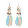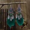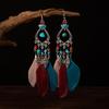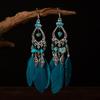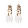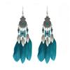 Bohemian Faux Silver Feather Tassel Mosquito Coil Earrings: Summer Retro Ethnic Ear Jewelry