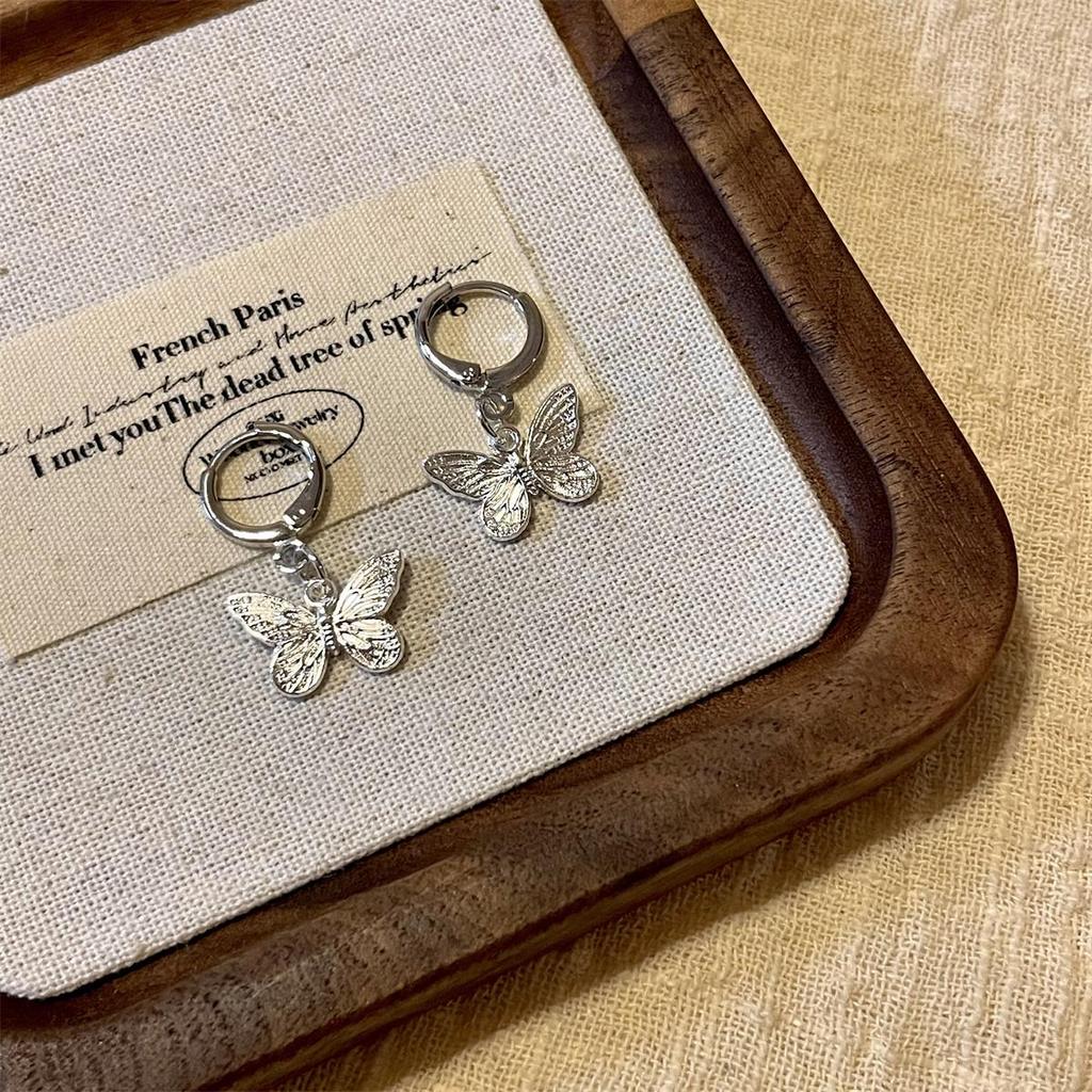 S925 Silver Butterfly Handmade Retro Earrings - Women's Spring/Summer Commuting Hoops