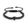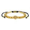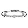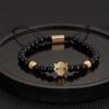 Pulseira Punk Trançada de Aço Titânio Masculina com Cabeça de Leopardo, Zircônia e Contas de Abacaxi.
