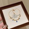 Colar Retro com Borla de Safira: Artesanato de Vidro Gota de Água Azul com Estilo Renda Francesa