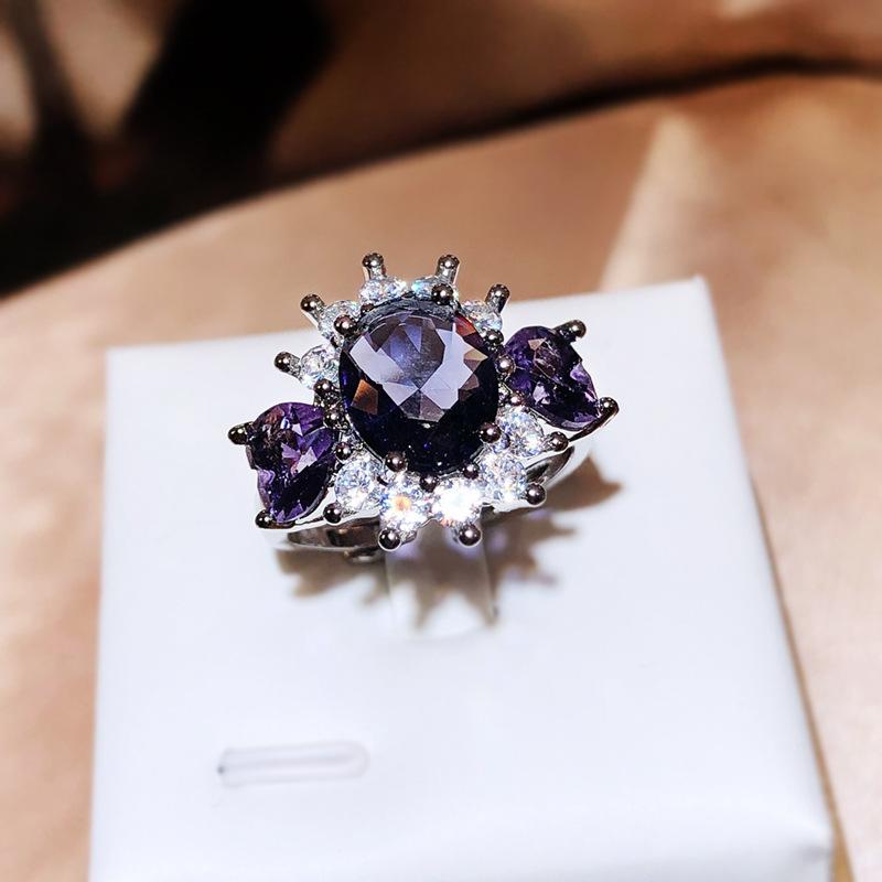 Cobre Anel Simples Doce Diamante Senhoras Novo Anel Zircônia Roxo Festa Feminina Casamento Presente de Aniversário