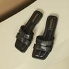 French square-toed thick-heeled cool slippers for women's outer wear 2025 summer new fashion woven one-word beach slippers