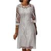 Você terá um visual de rua elegante quando combinar este vestido midi de costura de renda com bolsa moderna e colar retrô.