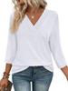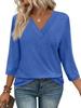 Blusa feminina de malha com decote em V e manga 7/8, casual com amarração na cintura