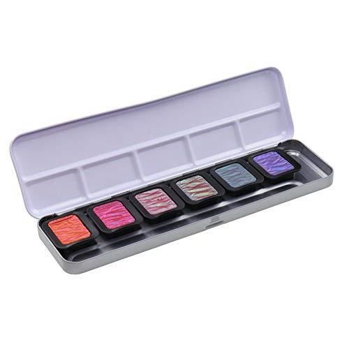 Finetec K-F7003 Flip-Flop Lot de 6 gamelles de couleur 30 x 22 mm dans un coffret métal en caoutchouc arabique, pigments, métal