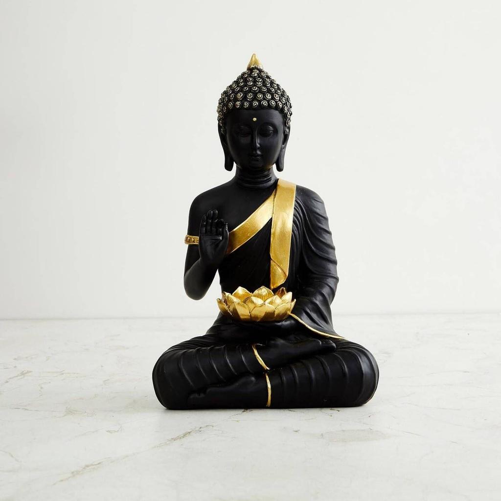 Estatueta de Buda Sentado em Meditação Peça de Exibição Ídolo Decoração de Casa Sala de Estar Presentes Peça de Exibição Decorativa - 27 cm (Resina, Preto)