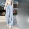 Women's Summer Dopamine Relaxed Lazy Thin High-End Contrast Color Plaid Straight-Leg Drapey Casual Wide-Leg Pants