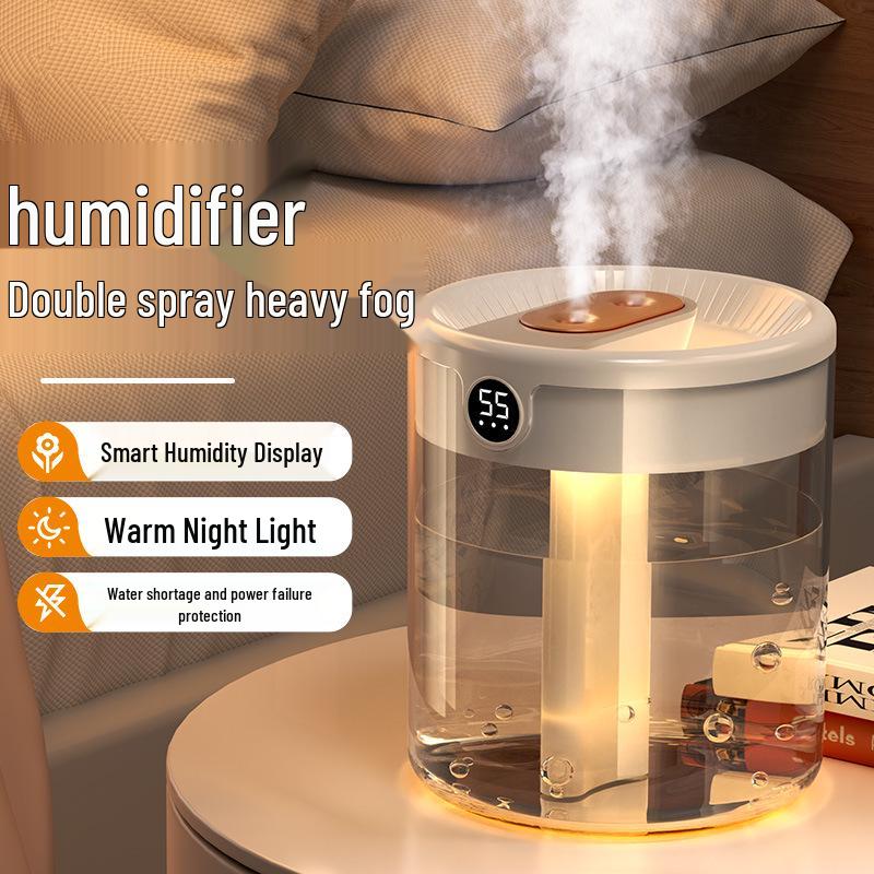 USB 2L Double Spray Humidifier with Silent Operation & Night Light for Home & Office