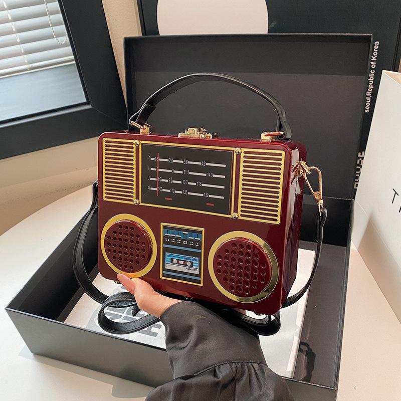 Bolsa rádio retrô acrílica 2025 nova moda personalizada pequena bolsa quadrada feminina portátil mensageiro caixa bolsa