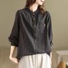 Spring and Autumn Cotton and Linen Long-sleeved Striped Pure Cotton Shirt Artistic Top
