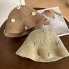 Women's Floral Straw Hat Summer Seaside Sun Protection Sun Bucket Hat Foldable Vacation Style Hollowed-Out Woven Hat for Outings