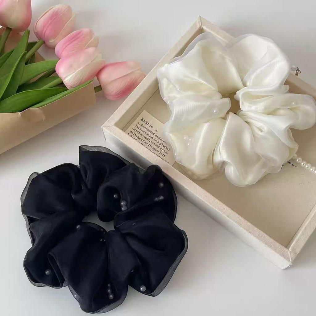 Large Pearl Organza Large Intestine Hair Band Simple Headband High-End Head Flower Headgear Hair Accessories Head Ring Women