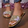 Chinelos de borboleta de tamanho grande para comércio exterior, novos para mulheres, prateados, versáteis, sola macia, confortáveis, para usar ao ar livre, sandálias de uma tira