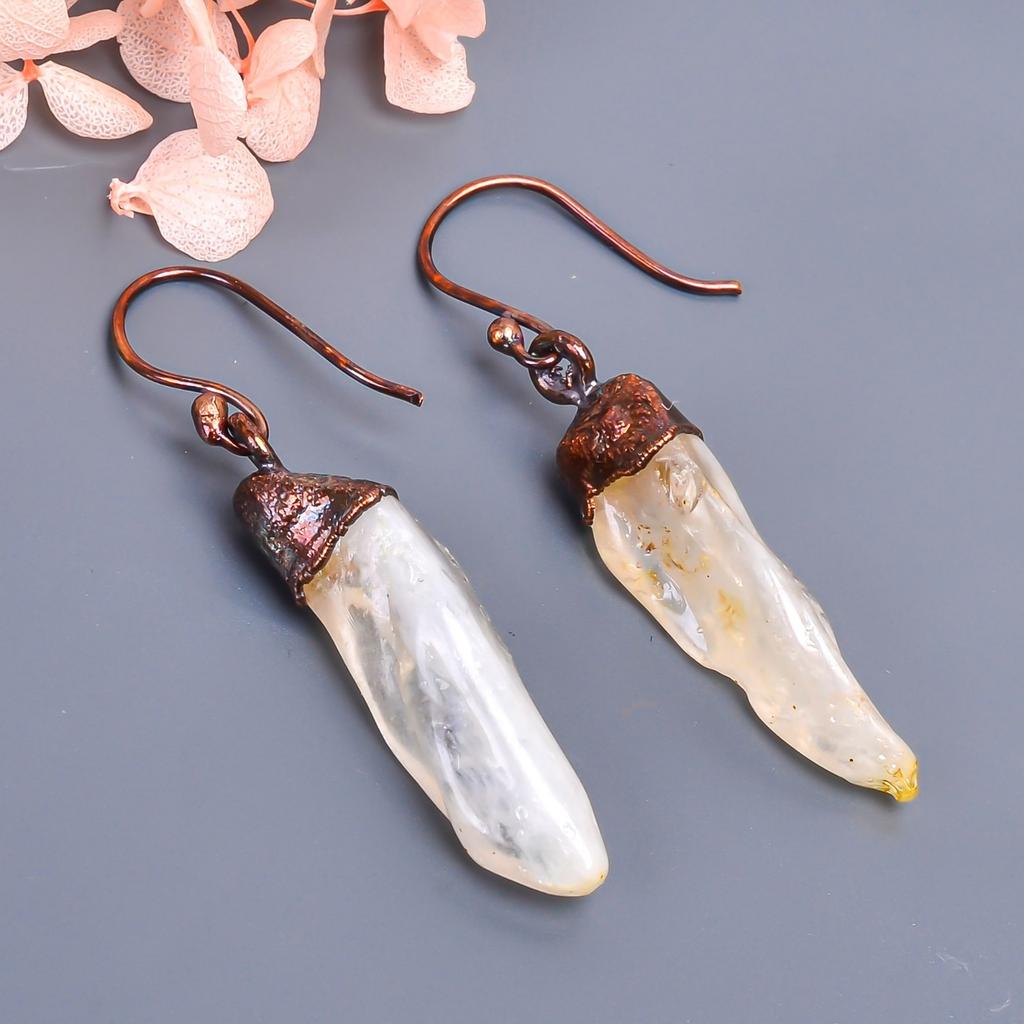 Fancy Natural Crystal Rough Copper Trendy Dangling Birthday Engagement Earrings V-1