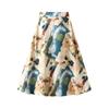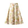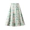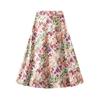 Qooth Saia Midi Feminina de Cetim Estampada Floral Elegante Cintura Elástica Acetato QT2144
