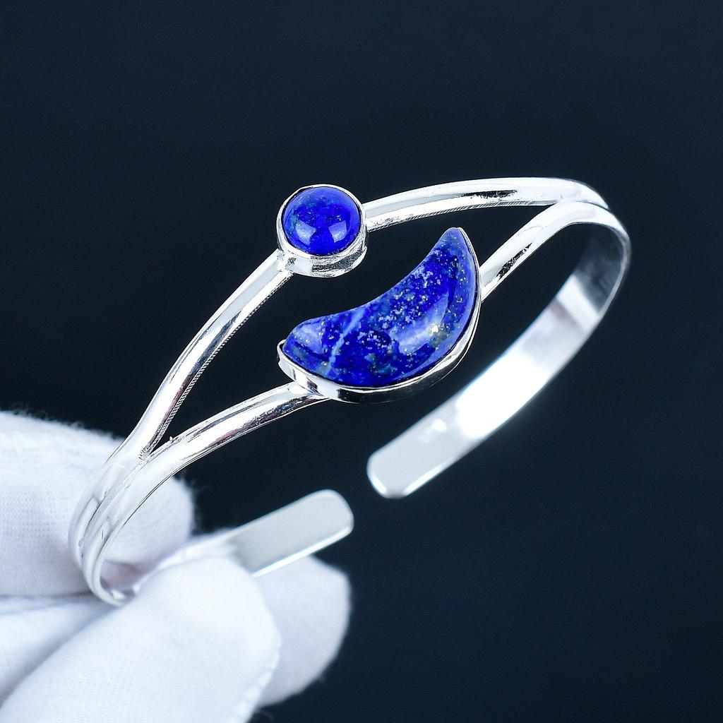 Gema Lápis-Lazúli Natural Pulseira Bracelete Feita à Mão Prata de Lei 925 Pulseira Bracelete, Pulseira Lápis-Lazúli Para Esposa, Pulseira Unissex, Presente para Usar em Festa