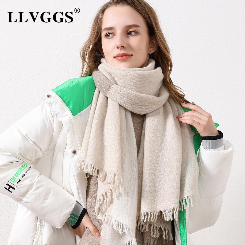 2025 women's knitted wool scarf women's fringed color matching wool lady scarf shawl warm wear fashion