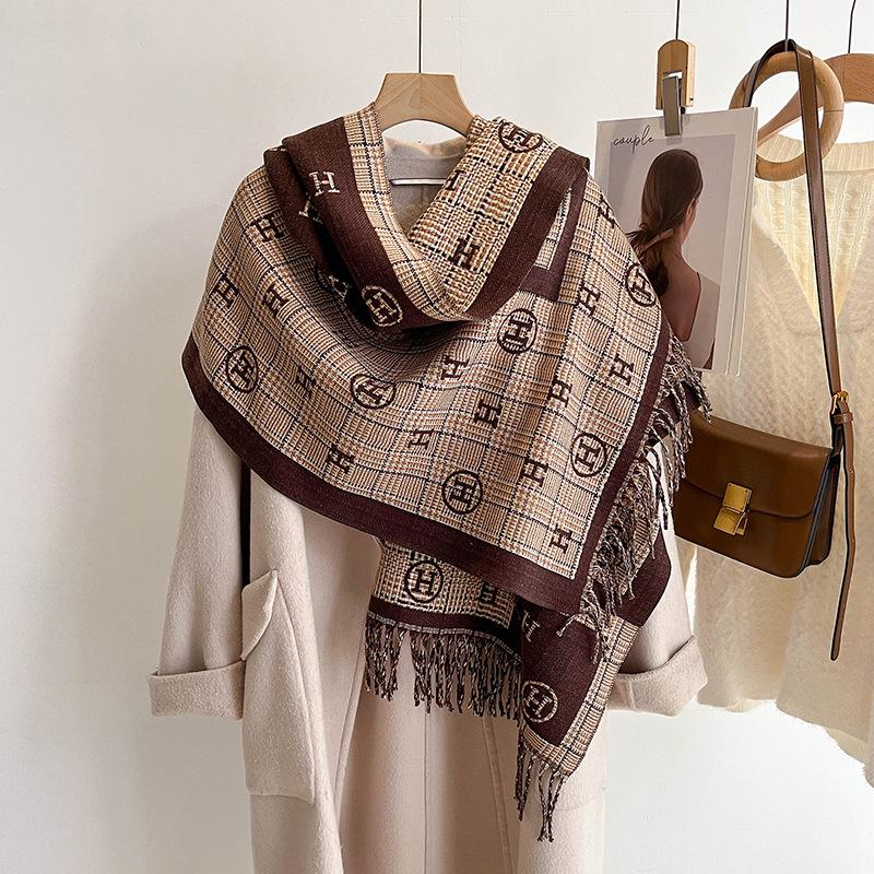New letter fringed scarf men's and women's high-end scarf fashionable thickened versatile shawl
