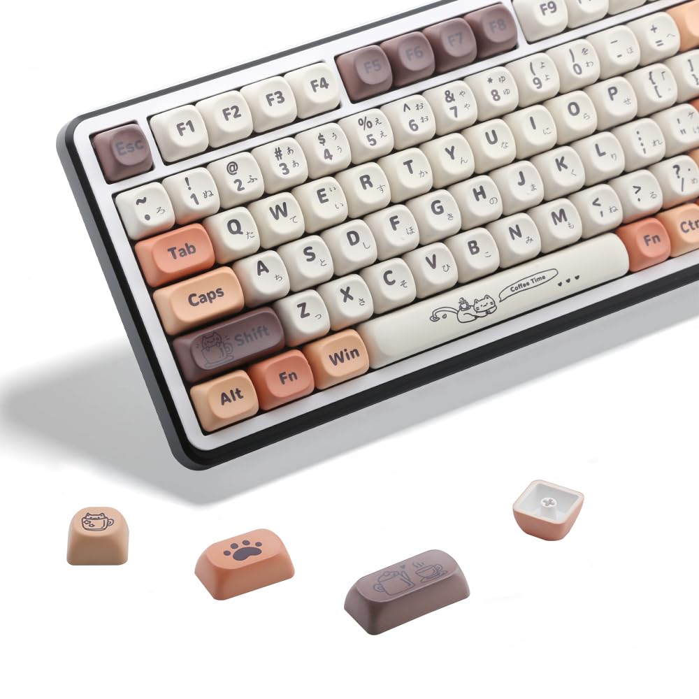 134 Teclas PBT Teclas Tema Gato Café Perfil MOA Teclas Sublimação de Tinta 5 Lados para Teclado Mecânico 60% 65% 75% 100%