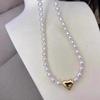 Colar de gargantilha de corrente de pérola coreana pingente de coração magnético para mulheres meninas joias presentes de noivado