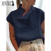 HNXC Moda feminina casual cor sólida estampa blusas e camisas de manga curta