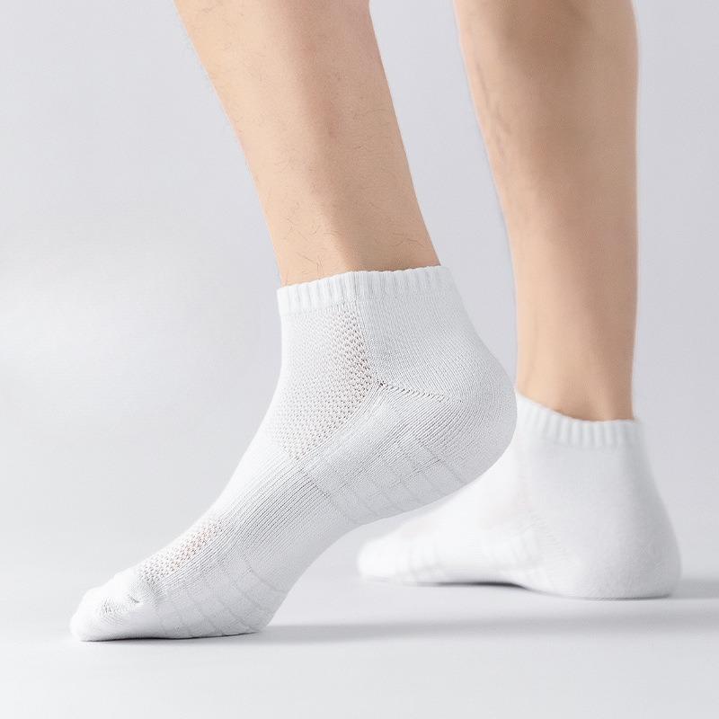 Men's Spring and Summer Thick White Short Socks with Towel Soles, Breathable Mesh Basketball Sports Socks, Comfortable Cotton Socks