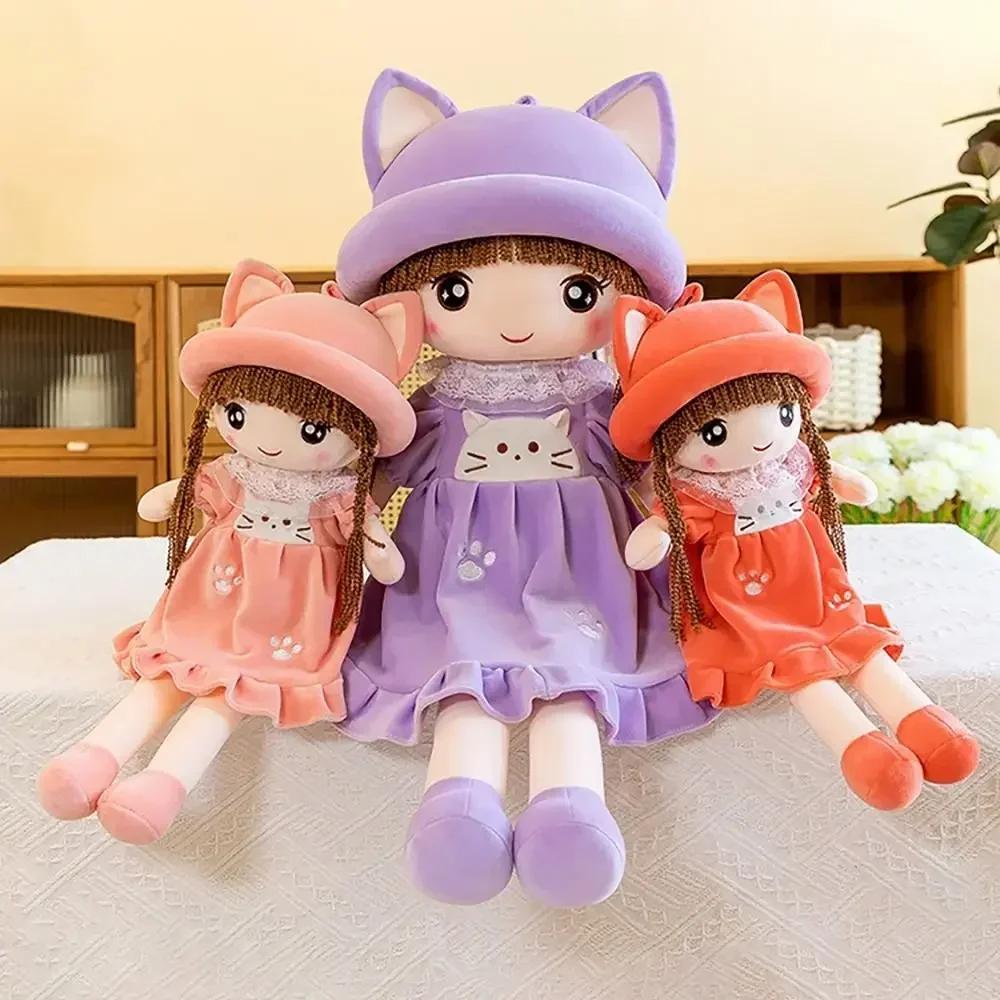 Vestido Rosa 45CM Menina Brinquedo de Pelúcia Macio Desenho Animado Princesa Boneca de Pelúcia Menina Bebê Almofada para Acalmar Boneca Decoração de Casa Presente de Aniversário para Crianças
