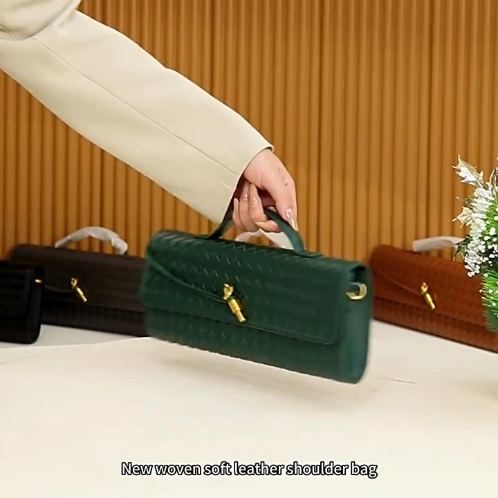2024 Nova Bolsa de Ombro Único de Couro PU Macio Tecido à Mão para Festa Noturna Bolsa de Mão Bolsa Transversal Bolsa de Designer para Mulheres