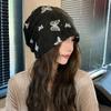 Chapéu de pilha bordado com borboletas chapéu de outono e inverno chapéu feminino retrô versátil quente chapéu de cabeça de saco mostrando o rosto chapéu pequeno para o frio