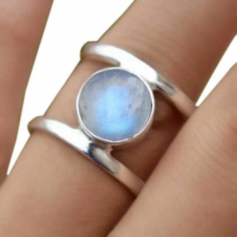 Round Rainbow Moonstone Gemstone 925 Sterling Silver Artisan Handmade Gift Ring
