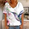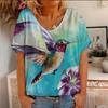 New animal bird 3d printing hummingbird t-shirt women's short-sleeved V-neck T-shirt women's clothing