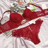 French Sexy Strap Lace Underwear Women's Upper Thin Lower Thick Gather Bra Deep V Big Bust Small Bra