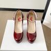 2025 Sapatos Casuais de Primavera de Salto Alto Preto Feminino Sapatos de Salto Alto de Cor Sólida Sapatos de Cunha Tamanho Grande Salto Alto Tamanho 34-42