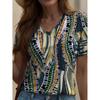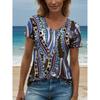 Summer Gradient Graphic Blouse V-neck Fashion Women's Retro Clothing Floral Print T-shirt Loose T-shirt