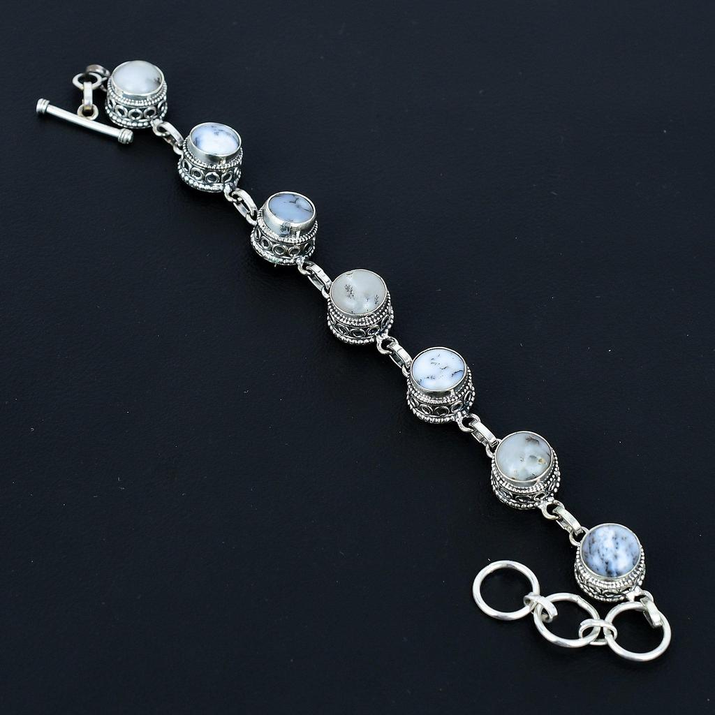 Pulseira de Opala Dendrítica Natural Pulseira de Prata Esterlina 925 Pulseira com Corrente Ajustável Pulseira Boho Feita à Mão Joias de Pedra Preciosa Presentes de Noivado