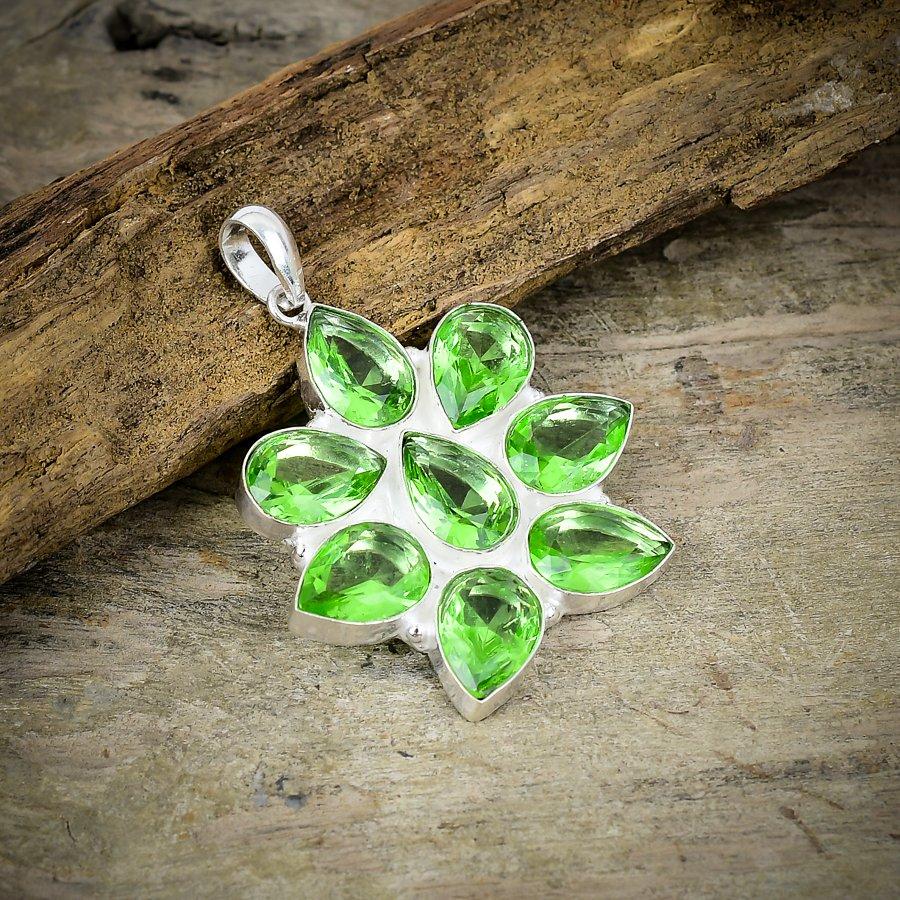 Tsavorite Gemstone Handmade 925 Sterling Silver Jewelry Pendant 1.97" M-82