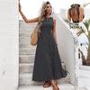 Vestido Estilo Férias 2024 com Alças Finas Costas Nuas Estampado para Mulheres