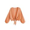 Fashion Casual Summer Women Beach Shirt Solid Color V Neck Solid Color Simple Crop Tops Elegant Ladies Tie Up Cardigans Streetwear Blouse Clothing