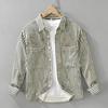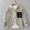 New Spring Retro Pure Cotton Striped Long-sleeved Shirt for Men's Outer Shirt