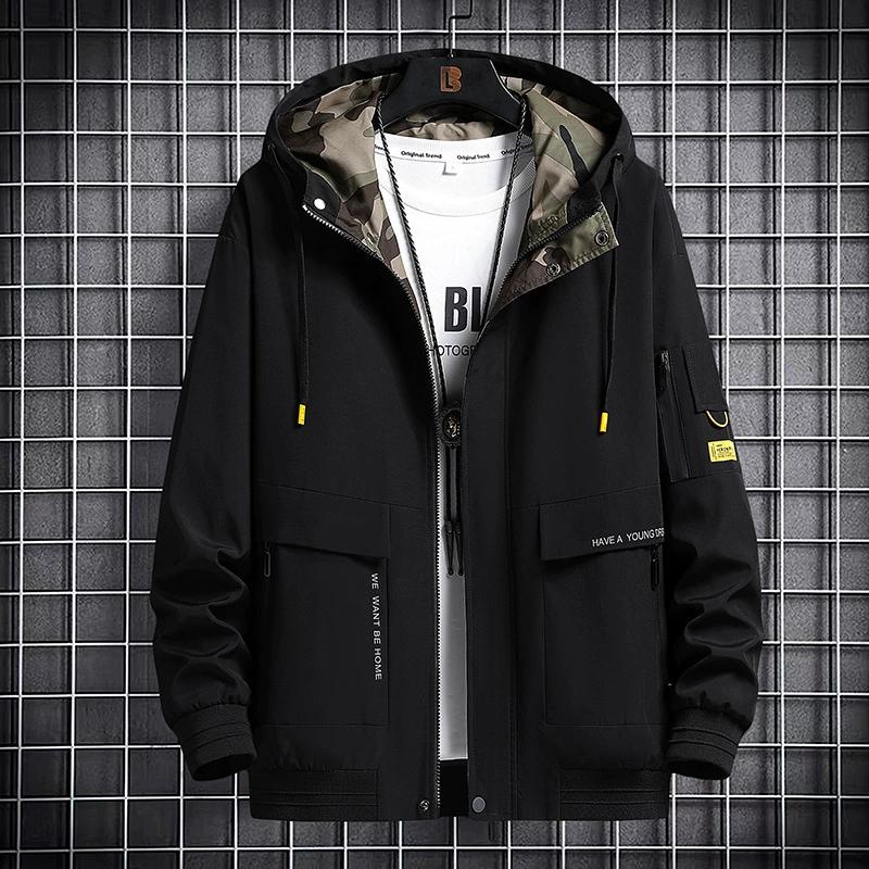 Men's Spring Autumn Large Size Fashionable Thick Hooded Casual Jacket Tooling Jacket Men