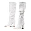New Black White Knee High Boots Women Fashion Pleated Designer Heels Sxey Pointed Toe Party Dress Dance Shoes Botas De Mujer