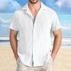 Camisa Casual Listrada de Algodão e Linho de Manga Curta Solta para Homem