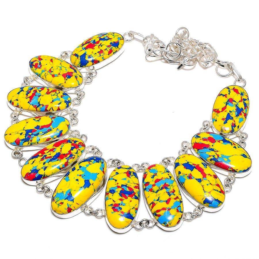 Mosaic Jasper Gemstone Handmade 925 Sterling Silver Jewelry Necklace 18" SU-9756