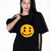 Rosto sorridente hahaha camiseta simples lavada manga curta neutra masculina e feminina solta com estampa
