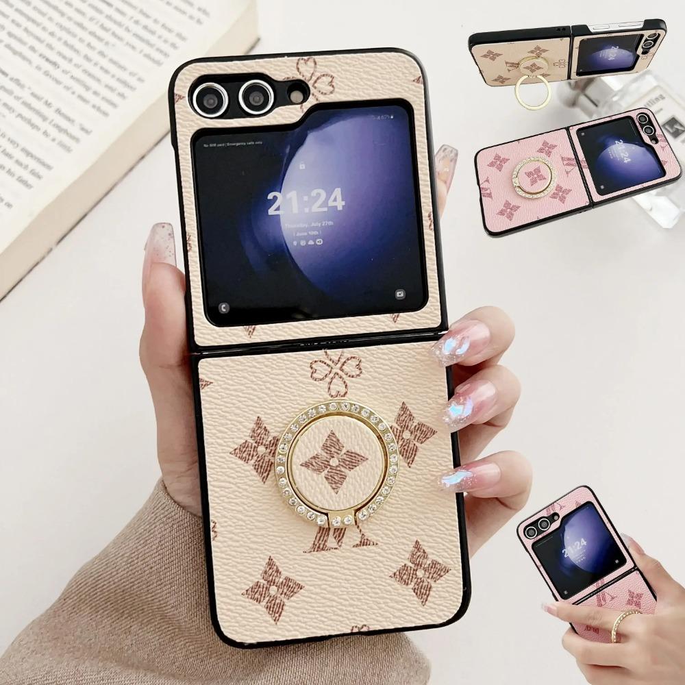Capa de Celular de Luxo Business Sle Padrão Retrô V Duplo para Samsung Galaxy Z Flip 7 6 5 4 3 Bla Pulseira de Corrente Mulheres Capa Protetora