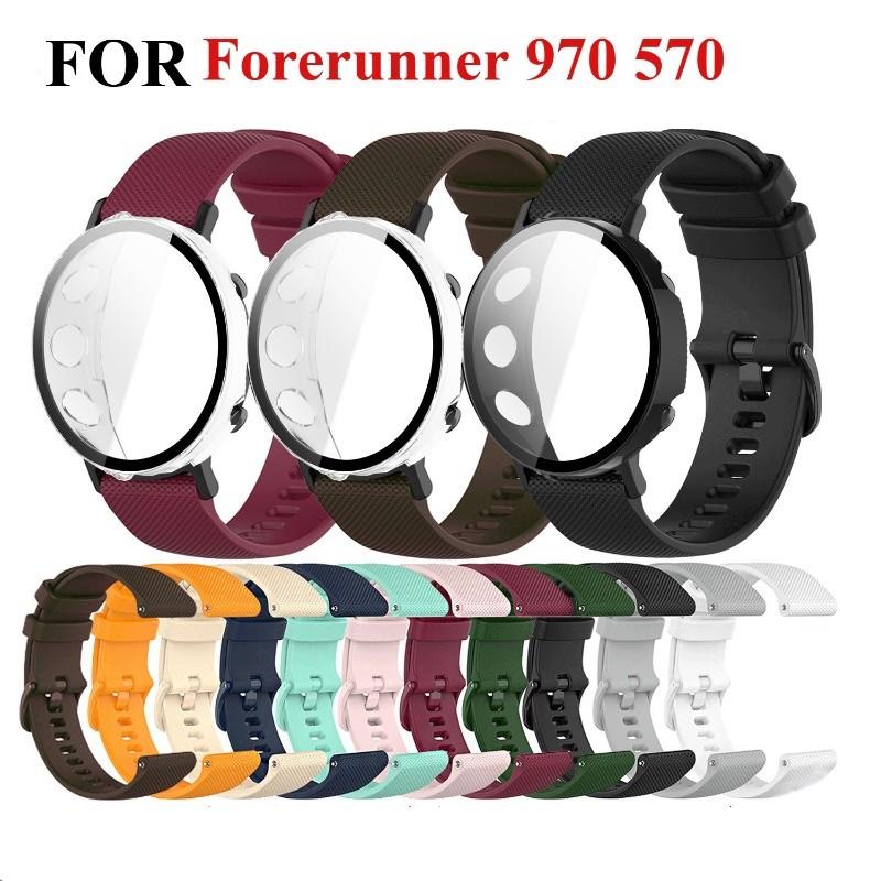 Watch Band with PC Case for Garmin Forerunner 970 Forerunner 570 42mm 47mm Silicone Strap Bracelet