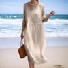 Vestido Feminino da Moda de Cor Sólida com Gola Redonda e Manga Sete Quartos Solto