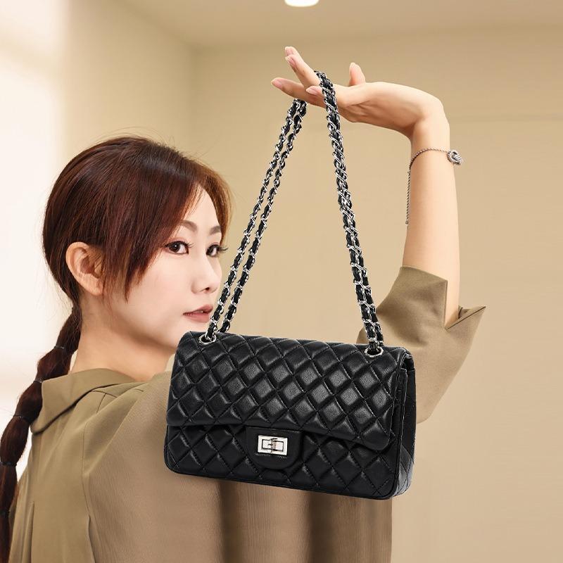 The first layer of sheepskin crossbody small square bag, genuine leather fashionable and high-end single shoulder diamond chain bag.