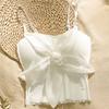 French Short Camisole Vest With Chest Pad Celebrity Temperament Pearlescent Three-dimensional Flower For Women Summer High-grade Sense Hot Girl