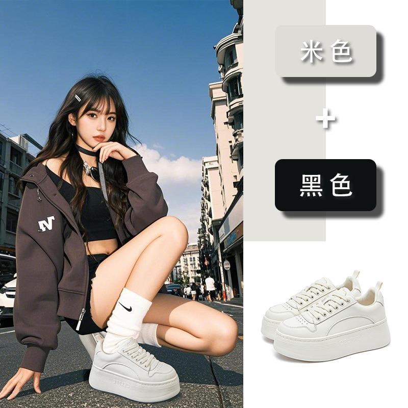 Foam bottom first layer cowhide little white shoes women's spring new sports board shoes platform muffin shoes casual single shoes